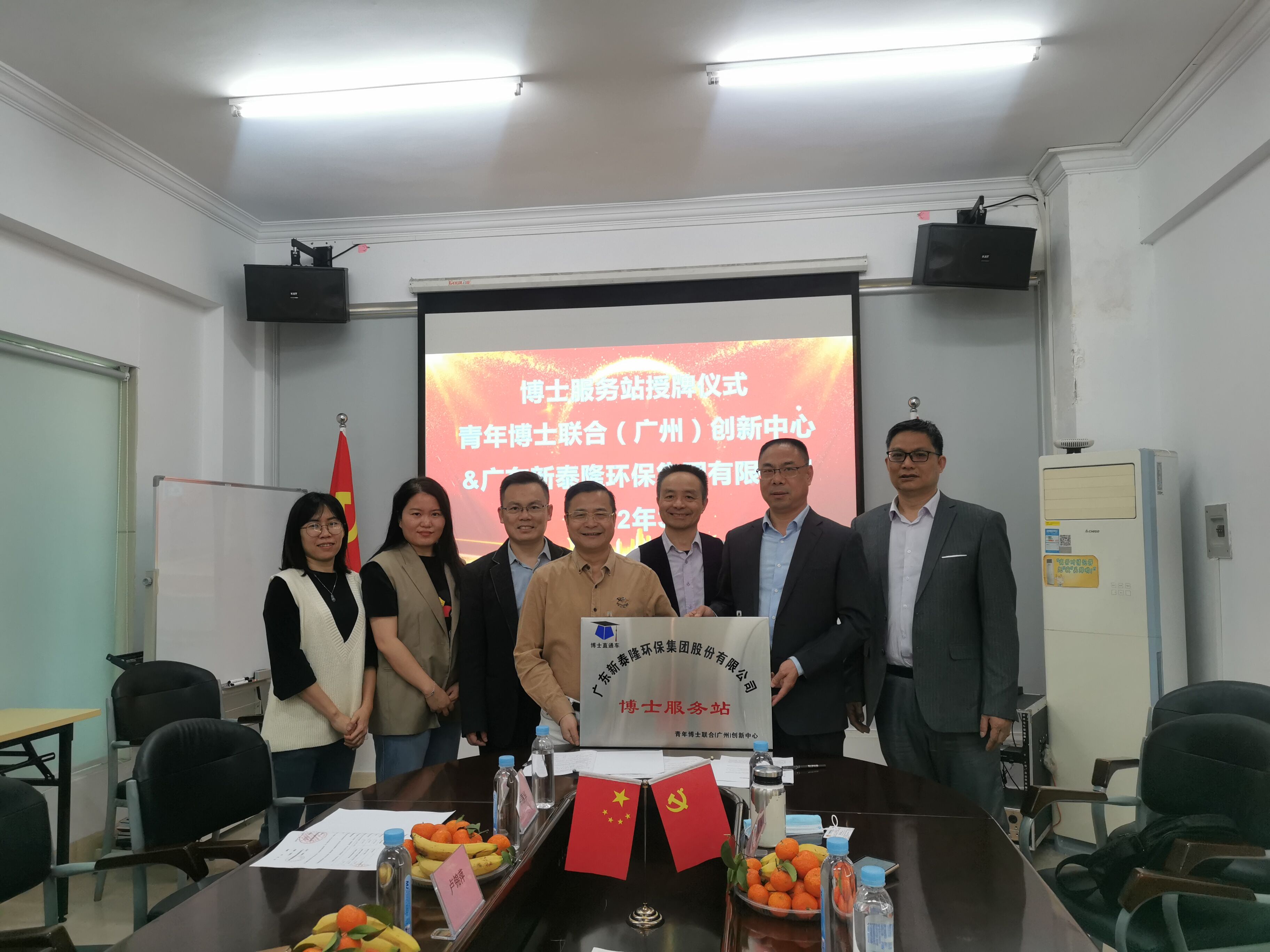 2022年3月10日,我司邀请了青年博士联合(广州)创新中心王卓主任,对博士服务站进行详细介绍,和新泰隆公司签订服务协议,并颁发“博士服务站”牌匾。